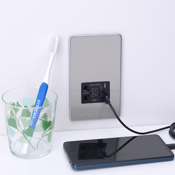 剃须刀插座,带 2400mA 双 USB 充电器(Type-A / Type-C)