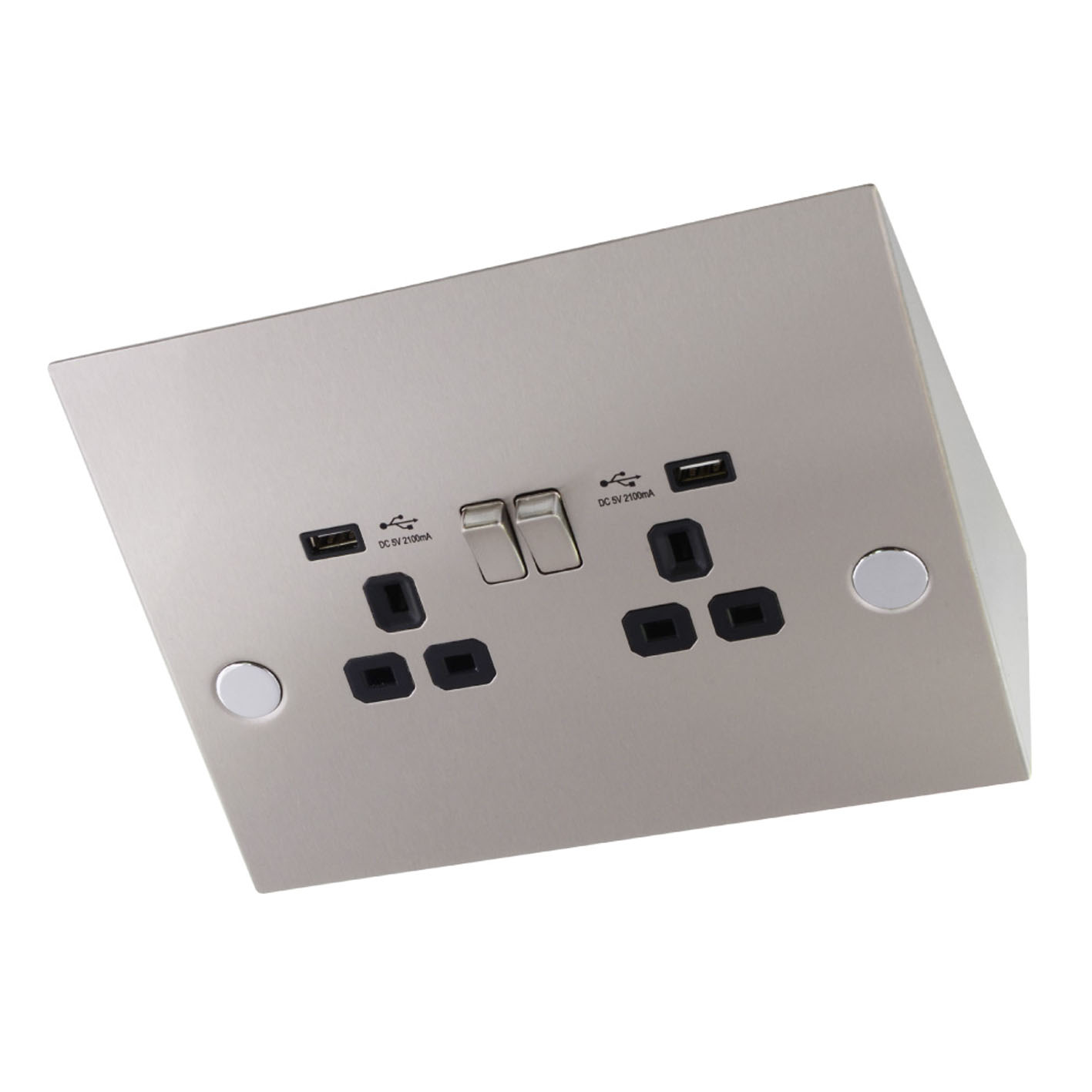 输入 : 220-240V~ 13A英式(港式)插座输出 x 2 双USB充电器输出: Max. DC 5.0V 2.1A 10.5W (share) 不锈钢壳体 按照 BS、CE 和 RoHS 标准制造 符合所有英国和欧盟法规