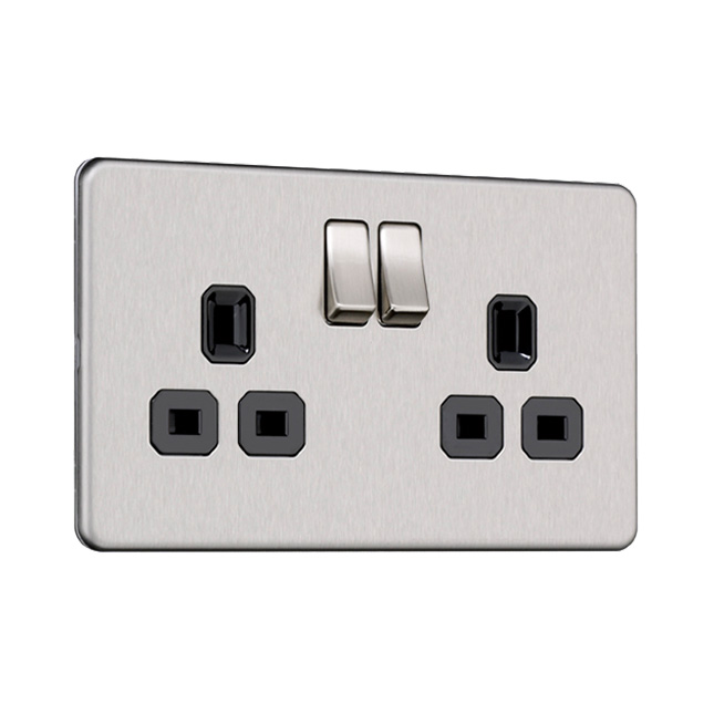 250V~ 13 AMP 双极可连接到两个开关触点以提供额外的安全性 尺寸:147.9 毫米(宽)x 87.5 毫米(高) 备有不锈钢, 仿银, 黑镍, 哑黑, 仿金, 哑白饰面 产品符合BS标准 产品已取得CE及RoHS认证 产品符合英国及欧盟标准